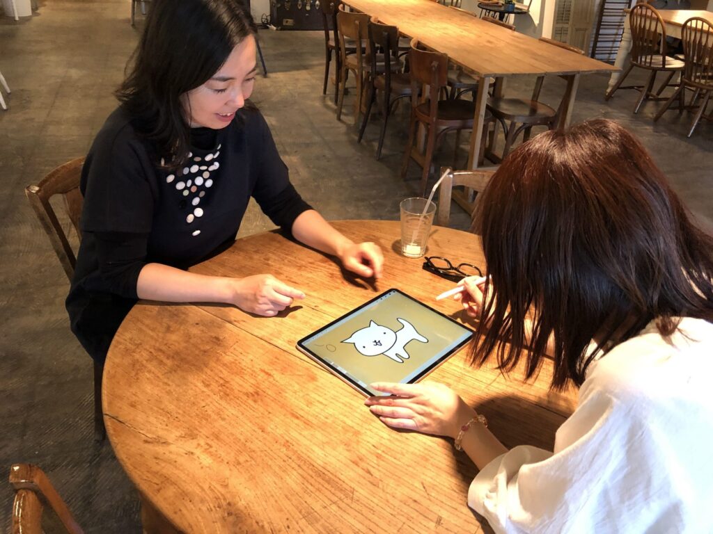 あいかわ先生の講座はiPadでお絵描きを諦めていた私でも驚くほど描けるようになりました。受講してよかったです。初心者なので、これだけは!という機能を教えてもらいました。マンツーマンなので、一緒に描き進められますし、わからないことがあればその場ですぐ聞けます。独学ではわからなかった覚えておくといい機能も教えてもらって大満足です。今後役に立ちそうな綺麗な配色のパレットもいただけて嬉しかったです。先生の講座はおすすめです。iPadでのお絵描きが楽しくなりました。これからも先生に色々教わりたいなと思っています。